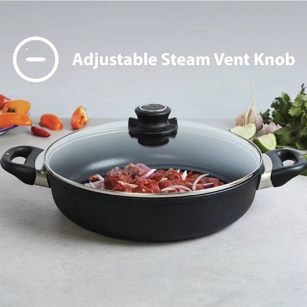 Leer produceert wereldwijd allerlei pannen voor onze klanten via zowel OEM als ODM. We bieden onze klanten ook de mogelijkheid om vanaf het begin samen met onze ingenieurs te werken aan het ontwerp van kookgerei, dat echt op maat is gemaakt. Al onze keukenartikelen en kookgerei worden ontworpen en vervaardigd in onze 150.000 vierkante meter grote fabriek, die zich in Cixi City, provincie Zhejiang, China bevindt.