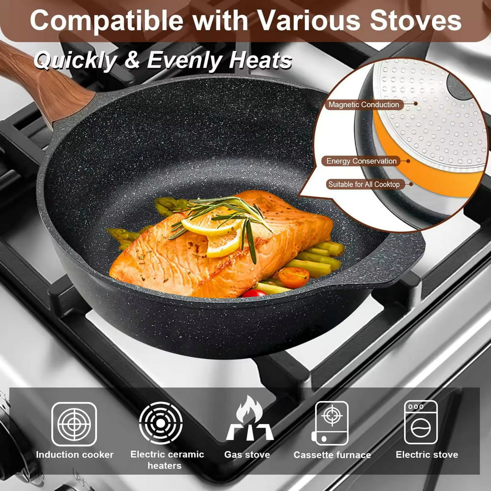 Thuis / Product / Frituurpan / Grote, op maat gemaakte koekenpan met anti-aanbaklaag en houten handvat